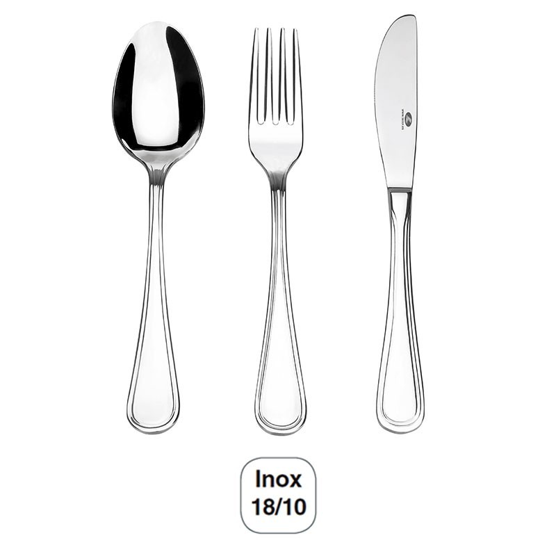 Faca de sobremesa Série Áries fabricado em aço inoxidável 18/10 de 2,5 mm de espessura de alta qualidade e excelente resistência à corrosão. Pack de 12 unidades.