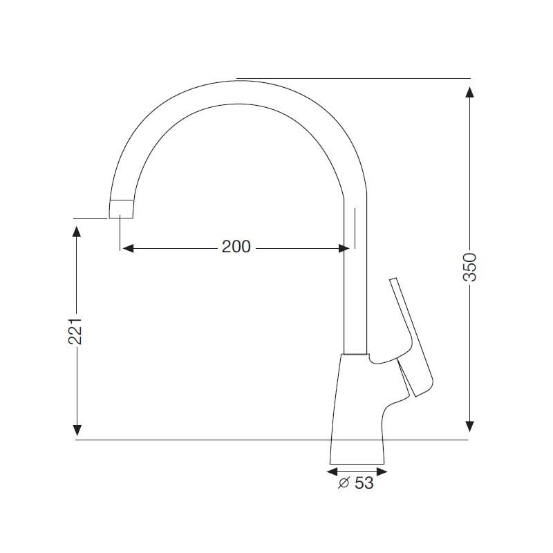 Torneira monocomando modelo Medea de 35 cm de altura e acabamento cromado para pia de cozinha. Cartucho cerâmico de 35 mm Instalação vertical sobre a borda.