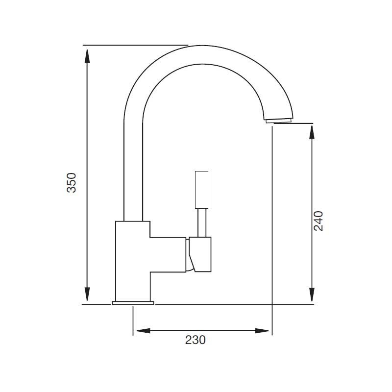 Torneira monocomando modelo Sol de 35 cm de altura e acabamento cromado para pia de cozinha. Cartucho cerâmico de 40 mm Instalação vertical sobre a borda.