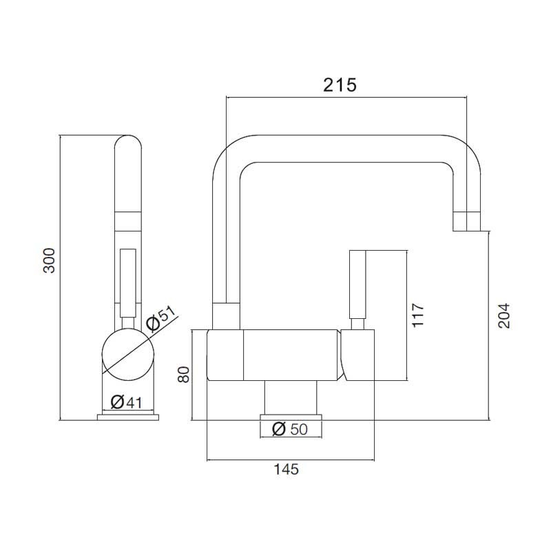 Chuveiro torneira com bica rebatível modelo-Íris de 30 cm de altura e acabamento cromado para pia de cozinha. Cartucho cerâmico de 40 mm Instalação vertical sobre a borda.