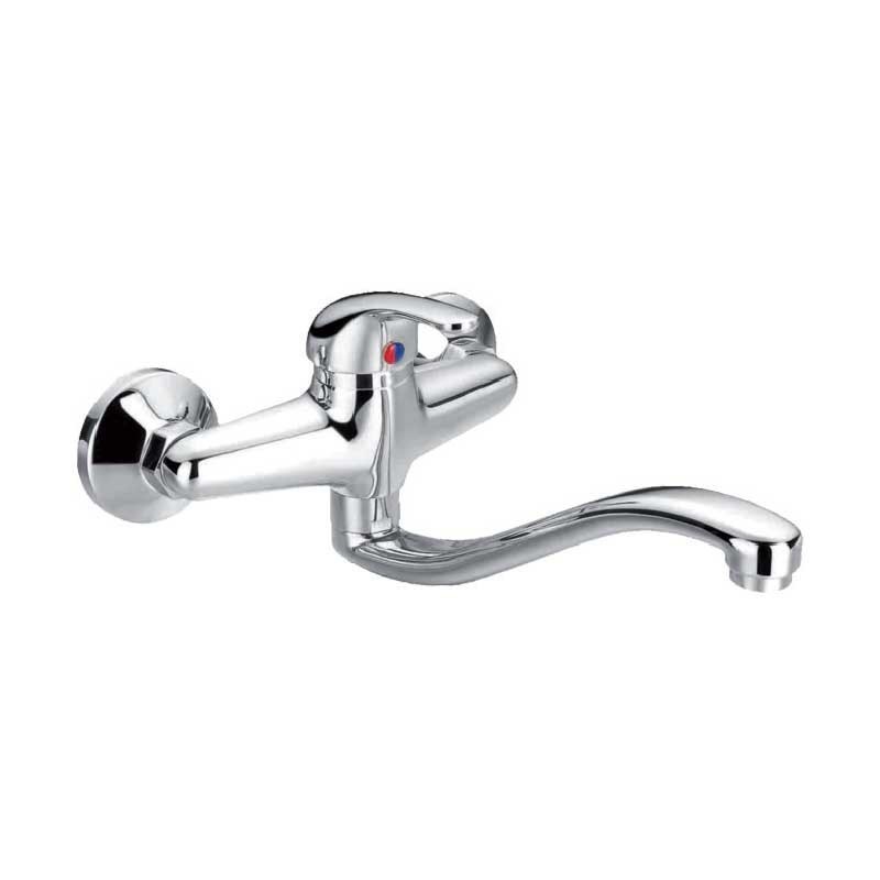 Chuveiro torneira com bica inferior modelo Padrão acabamento cromado para pia de cozinha. Cartucho cerâmico de 40 mm Desenho de um mural para instalação em parede. Distância entre tiros: 15 cm