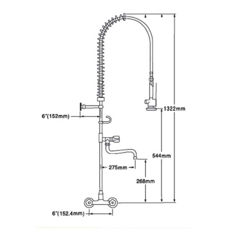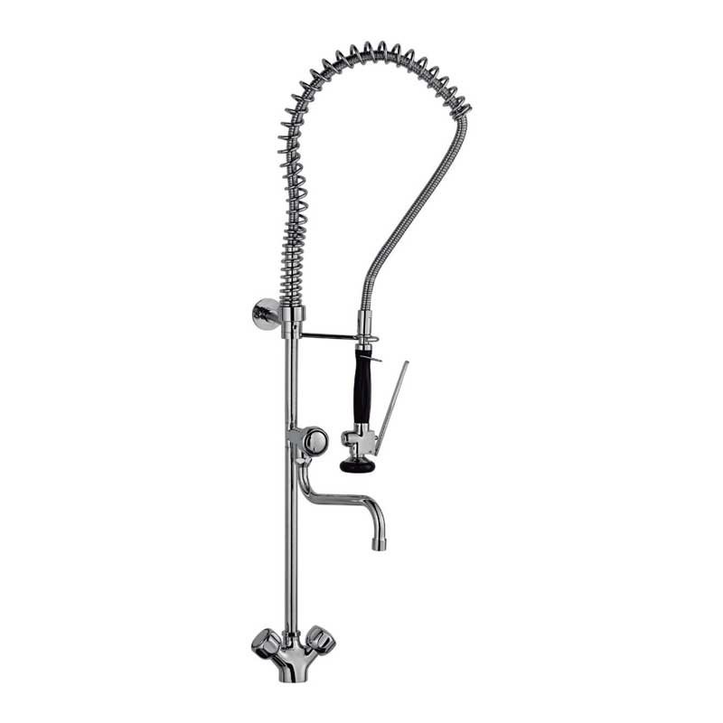 Torneira bimando com chuveiro, torneira com cais e torneira adicional modelo Industrial de 132,2 cm de altura e acabamento cromado para pias de cozinhas industriais. Cartucho cerâmico de 35 mm Instalação vertical sobre a borda.