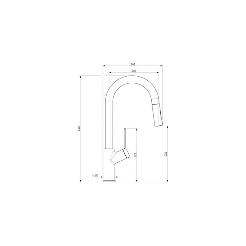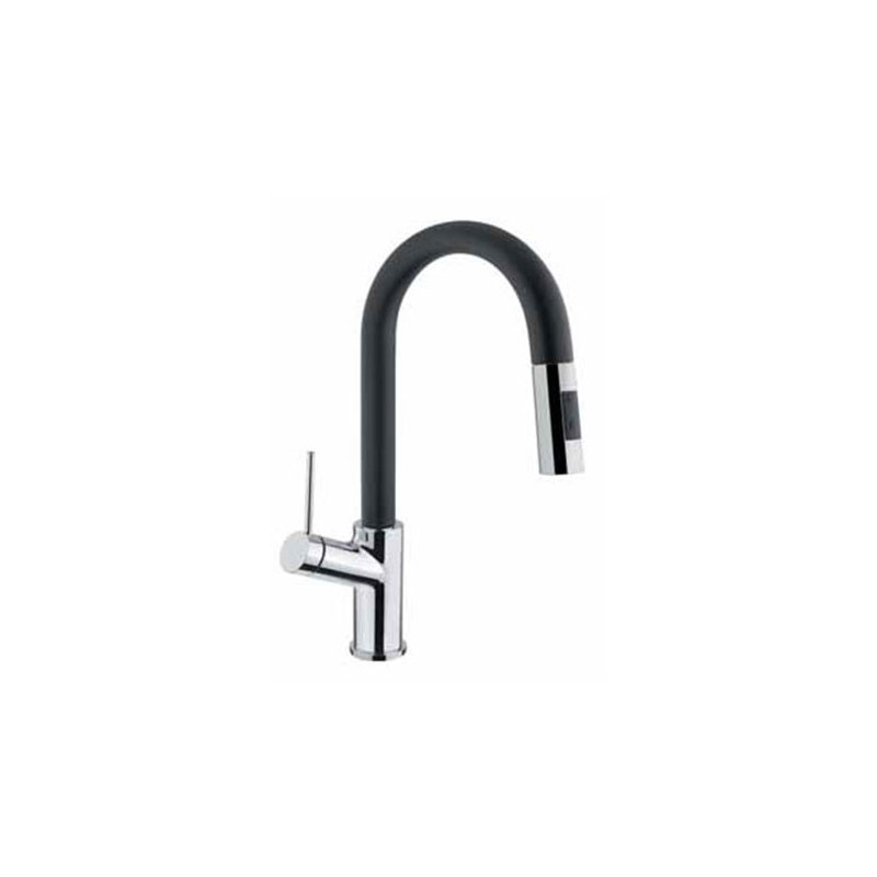 Torneira de cozinha modelo Viva D30 do tipo monocomando, chuveiro extraível e design italiano em aço inoxidável, acabamento cromado brilho e preto.