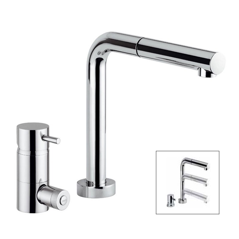Torneira de cozinha modelo Pure Ideale do tipo monocomando, osmose, bico removível integrado no mobiliario e design italiano em aço inoxidável, acabamento cromado brilho.