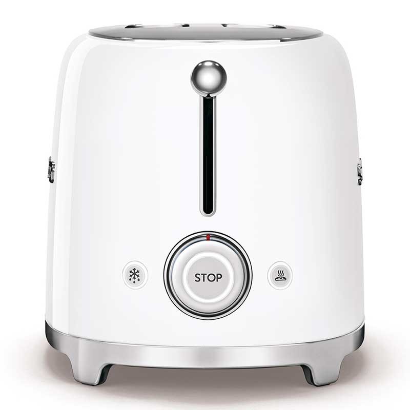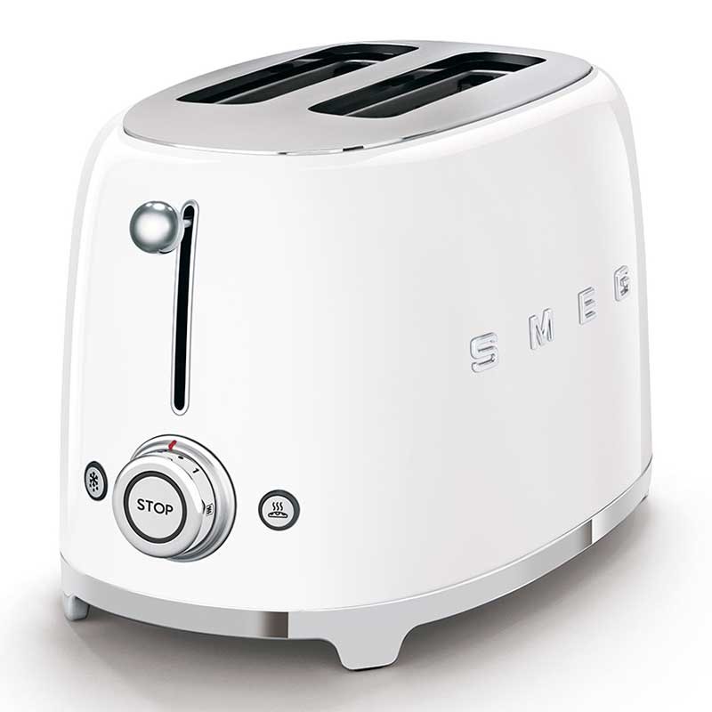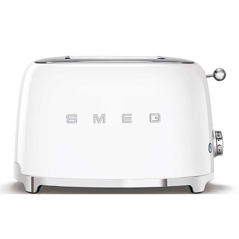Torradeira Smeg 50's Style com corpo em aço inoxidável Cor branca brilho com 6 níveis de aquecimento e 2 ranhuras para 2 torradas.