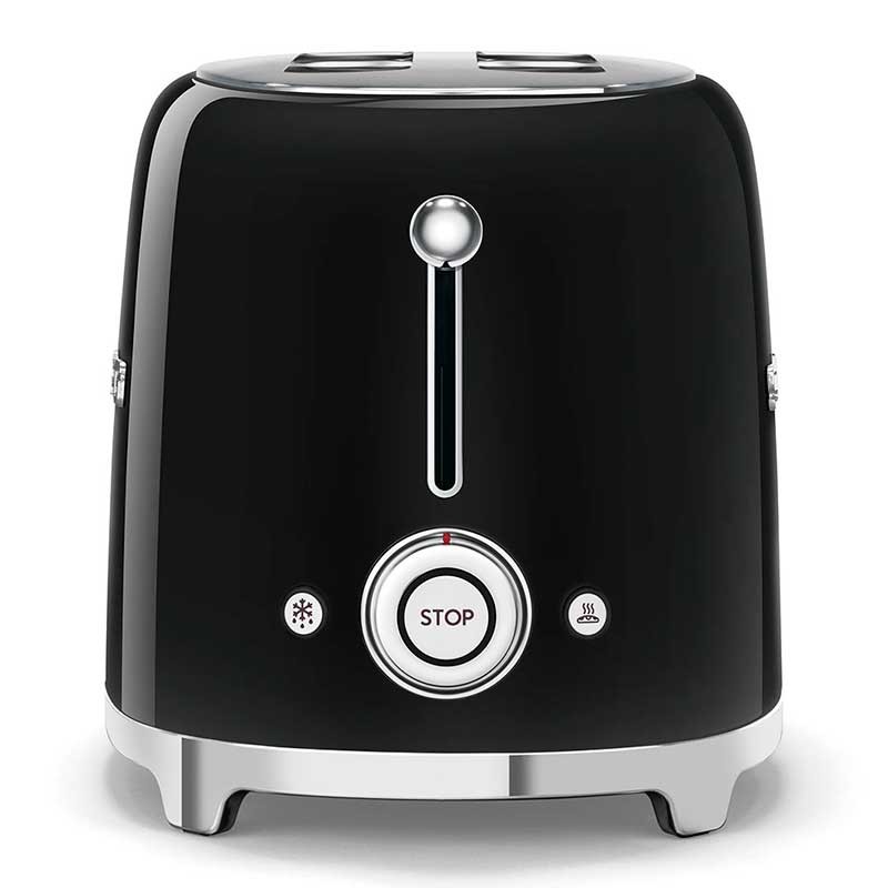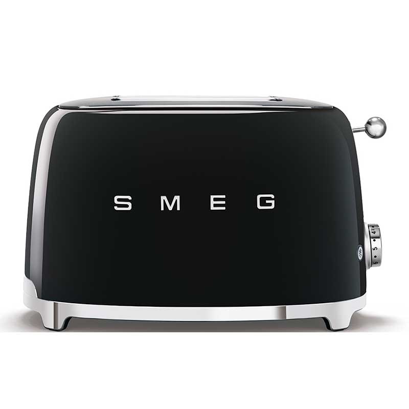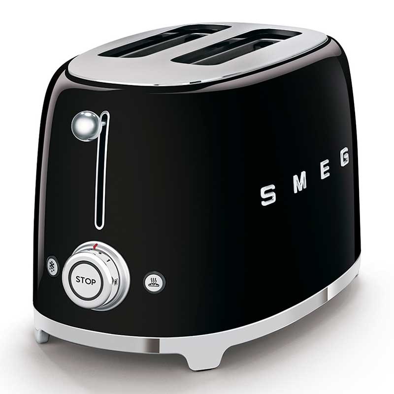 Torradeira Smeg 50's Style com corpo em aço inoxidável Cor preto brilho com 6 níveis de aquecimento e 2 ranhuras para 2 torradas.