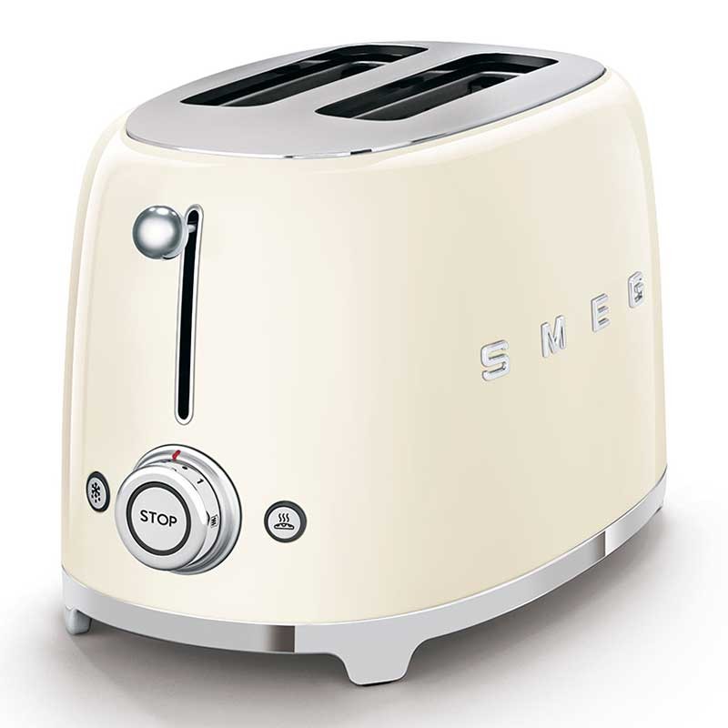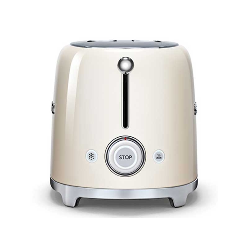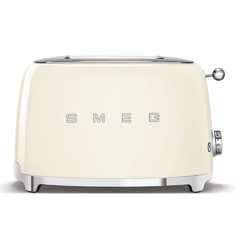 Torradeira Smeg 50's Style com corpo em aço inoxidável Cor Creme brilho com 6 níveis de aquecimento e 2 ranhuras para 2 torradas.