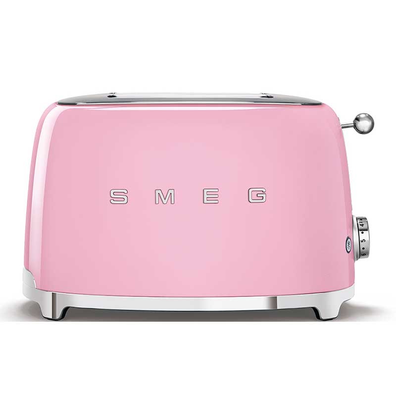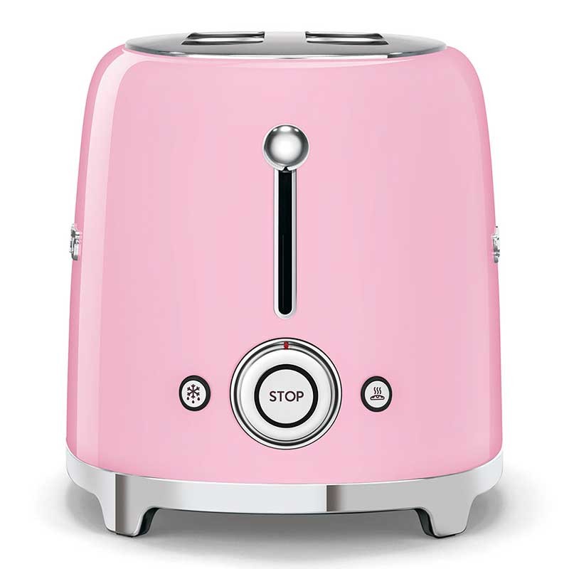 Torradeira Smeg 50's Style com corpo em aço inoxidável Cor-de-rosa brilho com 6 níveis de aquecimento e 2 ranhuras para 2 torradas.