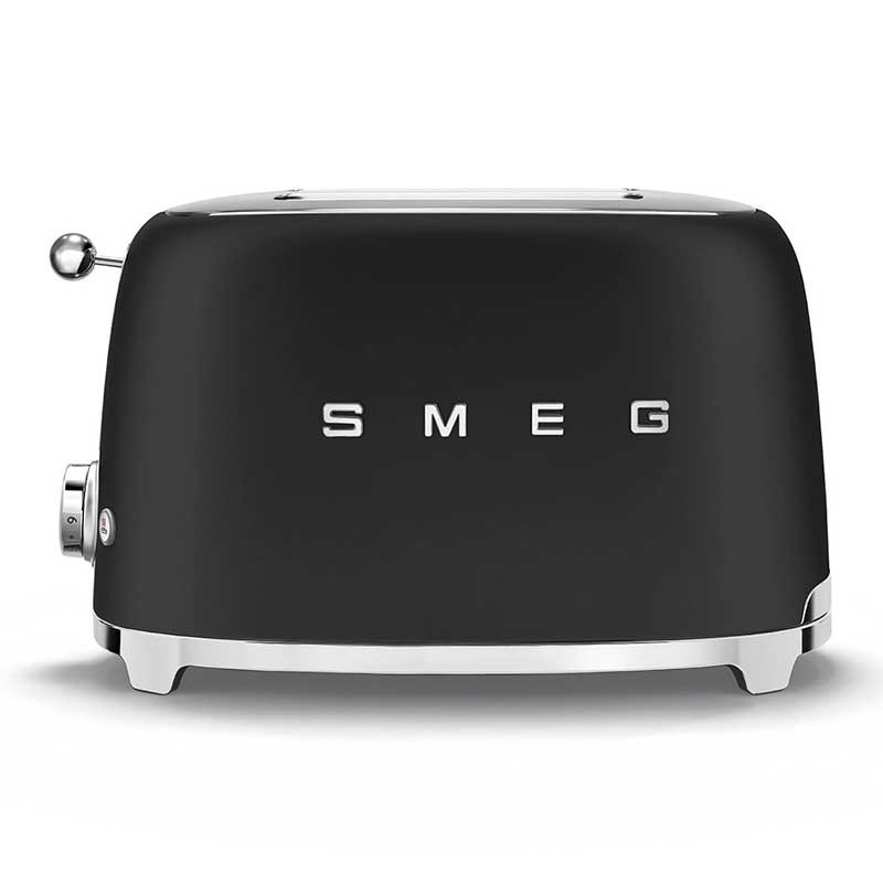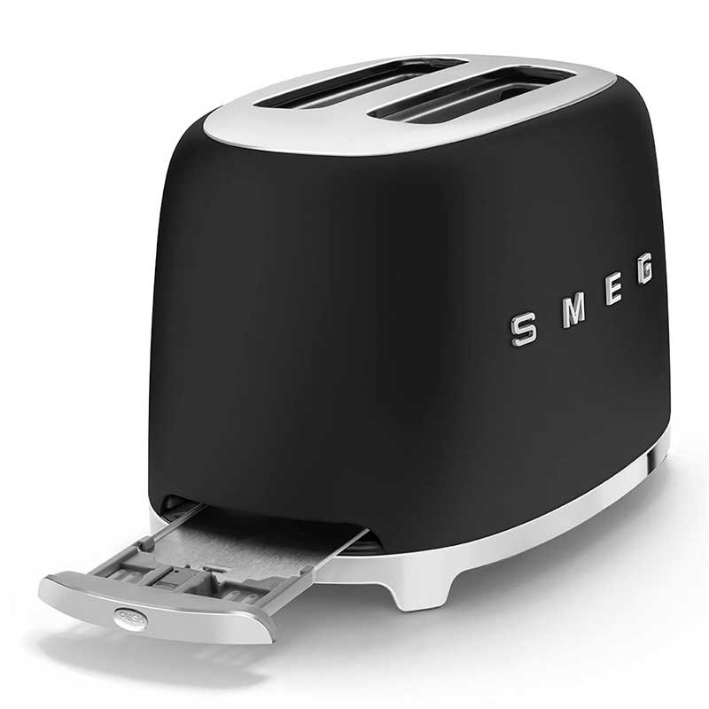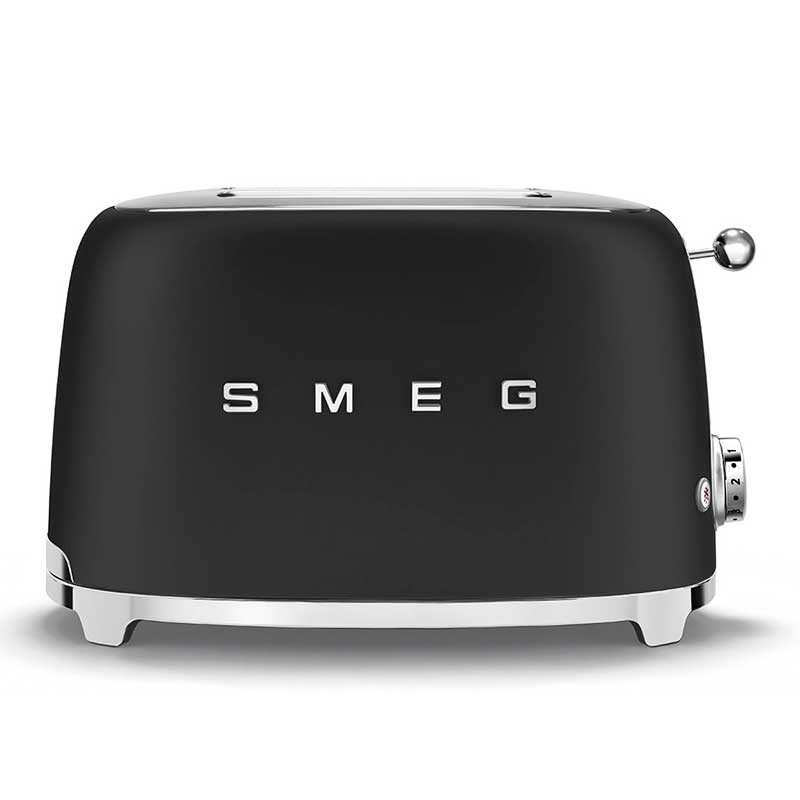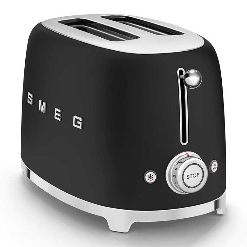 Torradeira Smeg 50's Style com corpo em aço inoxidável Cor preta mate com 6 níveis de aquecimento e 2 ranhuras para 2 torradas.