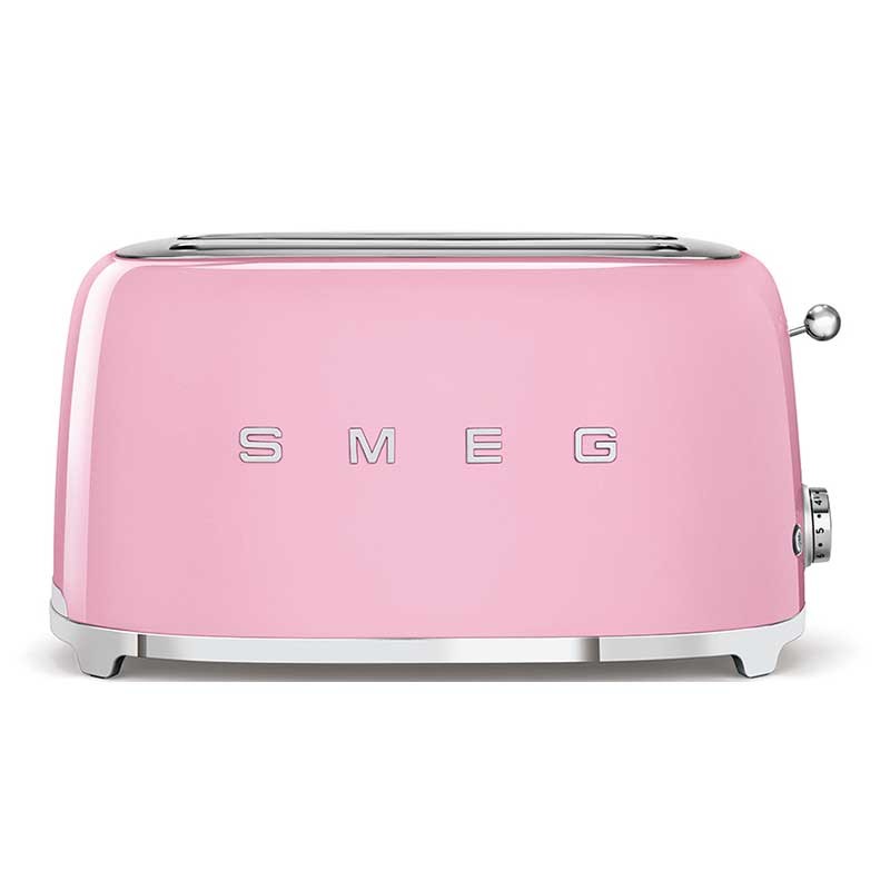 Torradeira Smeg 50's Style com corpo em aço inoxidável Cor-de-rosa brilho com 6 níveis de aquecimento e 2 ranhuras para 4 torradas.
