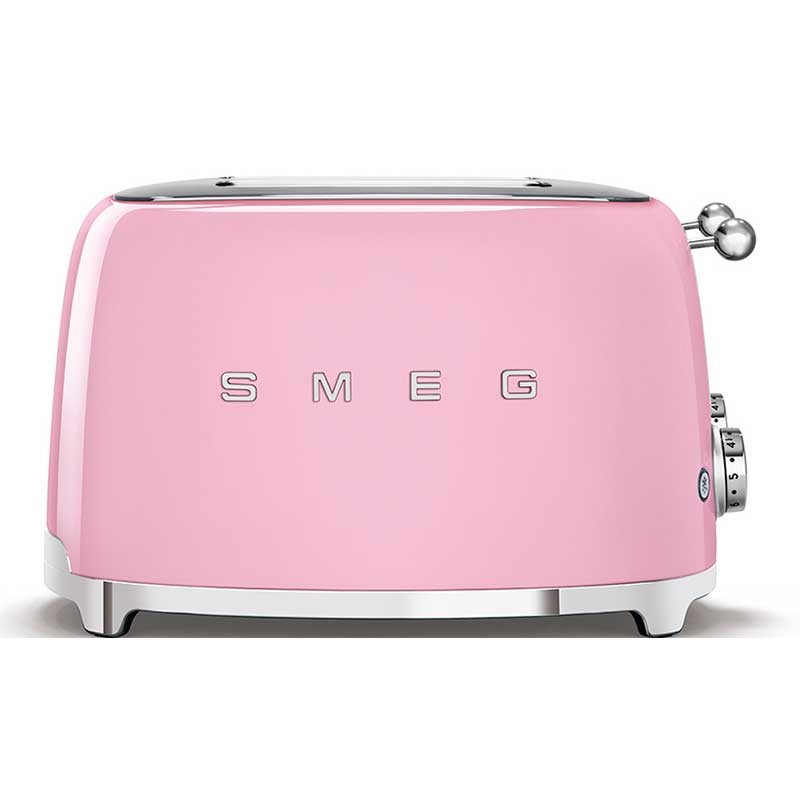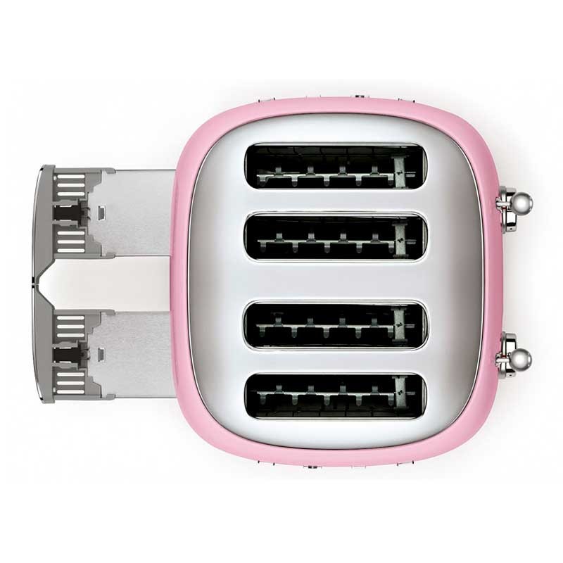 Torradeira Smeg 50's Style com corpo em aço inoxidável Cor-de-rosa brilho com 6 níveis de aquecimento e 4 ranhuras para 4 torradas.