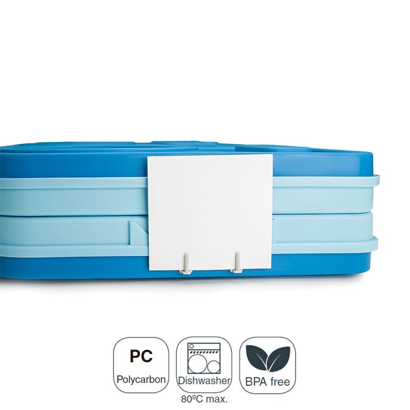 O encerramento portafichas hérmético para bandejas isolamento é ideal para colocar informações sobre o paciente que se destina a comida de um hospital ou residência, ou para dar informações sobre o menu que contém em seu interior.