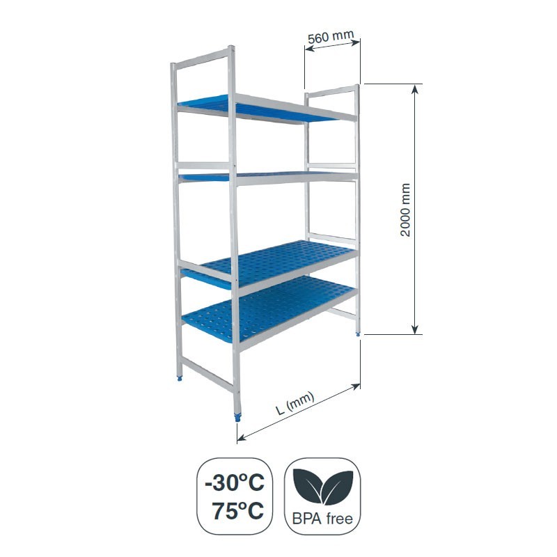 Estante modular Lacor completa GN 1/1 560 mm de profundidade e 2000 mm de altura, com 4 prateleiras. Longos de 710 mm a 1582 mm a escolher.