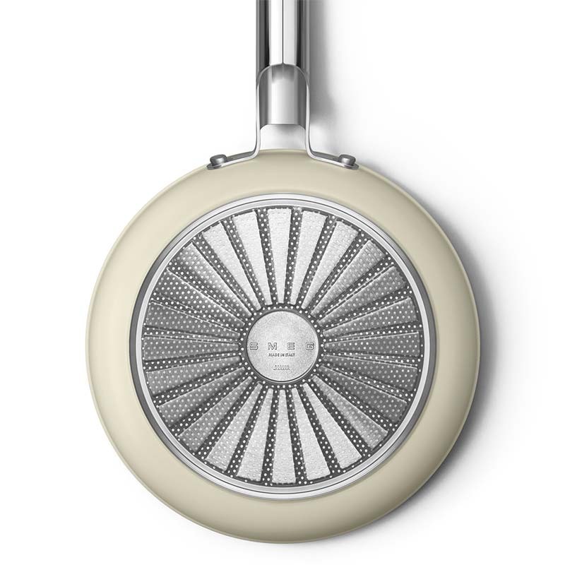 Frigideira antiaderente Smeg 50's Style com 24 cm de diâmetro, corpo em alumínio forjado e acabamento exterior bege creme mate.