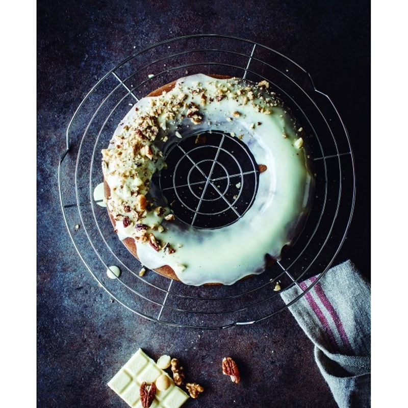 Grade de arame de aço cromado de 32 cm que há de base para repousar sobremesas recém-assados ou cobri-los de chocolate ou açúcar glass.
